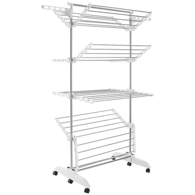 Det mobile tørrestativ imponerer med en robust ramme af rustfrit stål og modstandsdygtig plast, der sikrer høj stabilitet og holdbarhed samt en god bæreevne. Samlingen er desuden hurtigt klaret - bare sæt sammen og kom i gang.