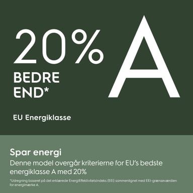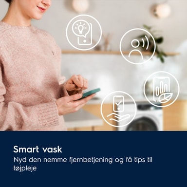Vælg program, og indstil intensitetsniveauet til dine behov. SmartSelect giver feedback baseret på dit valg og justerer programmets længde og temperatur, mens du bliver vejledt i at spare energi, tid og vand. *Baseret på intern test, der sammenlignede energi, tid og vandforbrug med indstillingen SmartSelect Normal til bomuld ved 40°C med SmartSelect Extra Light til bomuld ved 20°C, hvor mængden af vasketøj var 4 kg.