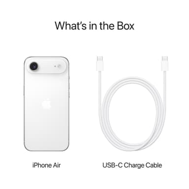 iPhone Air imponerer med sit holdbare Titanium- og Ceramic Shield 2-design i den tyndeste iPhone nogensinde på blot 5,8 mm. Oplev kraftfuld ydeevne fra A19 Pro Bionic-CPU’en, kombineret med et højkapacitetsbatteri og den skarpe 120 Hz ProMotion-skærm.Læs mere om produktet
