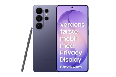 5000 mAh-batteriet i Galaxy S26 Ultra giver dig en langvarig batterilevetid, der kan levere 55 timers holdbarhed pr. fuld opladning. Desuden understøtter S26 Ultra trådløs batteriopladning, så du kan oplade dine trådløse hovedtelefoner eller andre enheder ved hjælp af din telefons batteri.