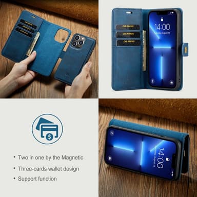 Et læderpungetui med en magnetisk aftagelig inder cover.