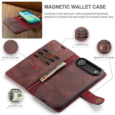 DG MING iPhone Air 2-i-1 Magnet Flip Cover - Rød