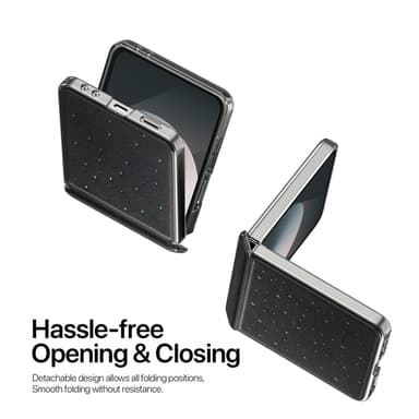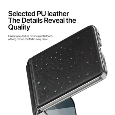 STEX Serien forener stil og funktion med et glitrende design i hård PC og PU-læder, suppleret af en laserreflekterende overflade, der fanger lyset fra alle vinkler. De bløde, afrundede hjørner og den behagelige overflade sikrer et fast og komfortabelt greb, selv ved lang tids brug. Den opdelte struktur gør det muligt at folde etuiet ud og sammen uden modstand, mens indbyggede stærke magneter holder det sikkert lukket. Hævede kanter omkring skærm og kamera giver fuld beskyttelse mod stød og ridser.