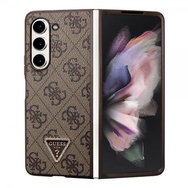Guess Samsung Galaxy Z Fold 5 Cover 4G Metal Triangle Strass Brun