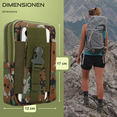 Det taktiske etui er perfekt til udendørsentusiaster. Etuiet er fremstillet af stænk- og slidstærk polyester af høj kvalitet, er robust og beskytter din telefon mod ridser og skader. Camouflage-looket giver det et stilfuldt militærdesignLæs mere om produktet