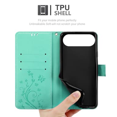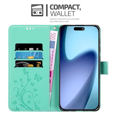 iPhone 17 AIR Pungetui Cover Blomster (Turkis)