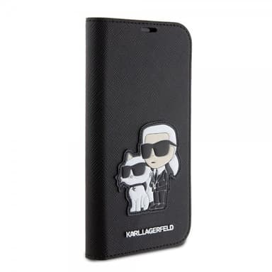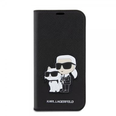 Karl Lagerfeld iPhone 15 Pro Etui NFT Karl & Choupette Patch Saffiano Sort