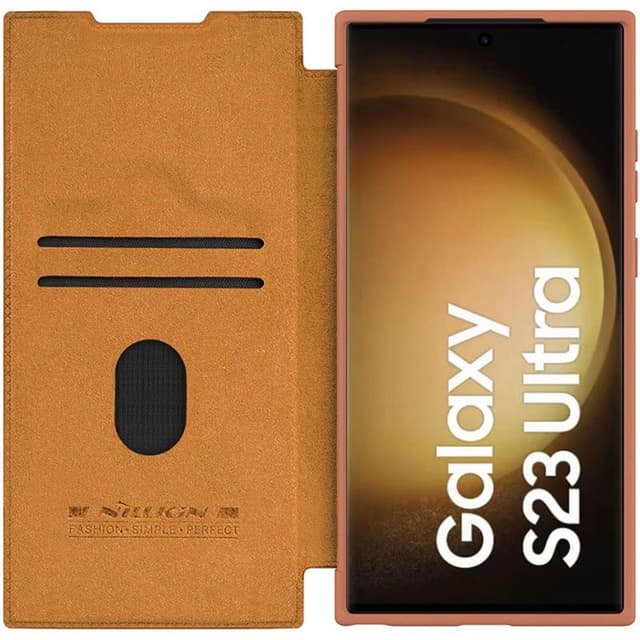 Nillkin Qin Pro patenteret design. Et praktisk beskyttende skal, der også beskytter kameraet på en smart måde. Veludviklet tynd kasse med adgang til funktioner og porte, så du aldrig behøver at fjerne telefonen. - Glidebeskyttelse, der beskytter kameraet. Model: Samsung Galaxy S23 Ultra