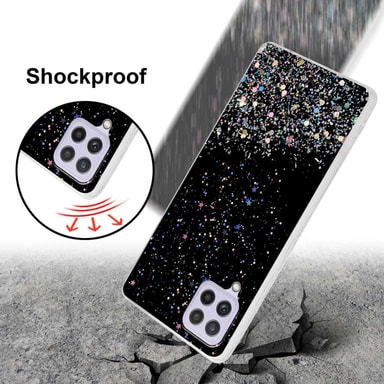 DESIGN: Ekstremt tyndt mobiltelefoncover, der tilpasser sig perfekt til din smartphones form. Din mobiltelefon er godt beskyttet og et rigtigt blikfang takket være glitterdesignet.