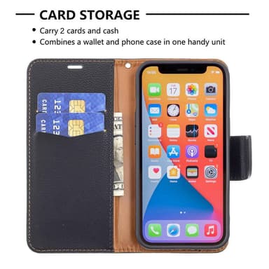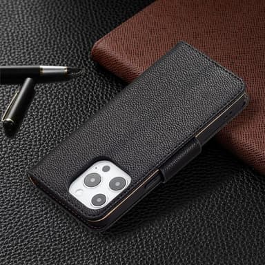 SKALO iPhone 13 Pro Premium Litchi Flip Cover - Sort