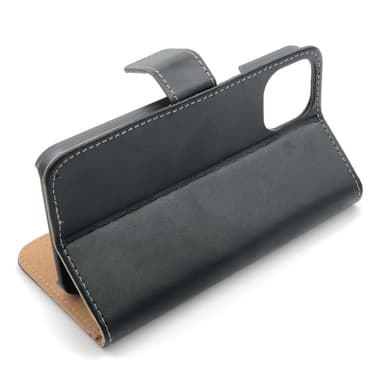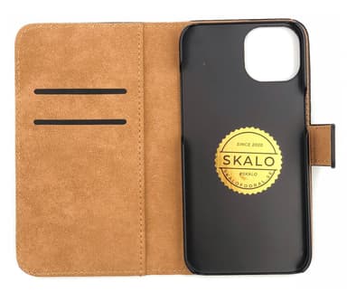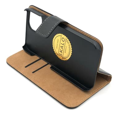 SKALO iPhone 14 Plus Flip Cover m. Pung i Ægte Læder - Sort