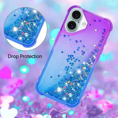 SKALO iPhone 16 Plus Kvicksand Glitter Hjerter TPU Cover - Lilla-Blå