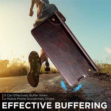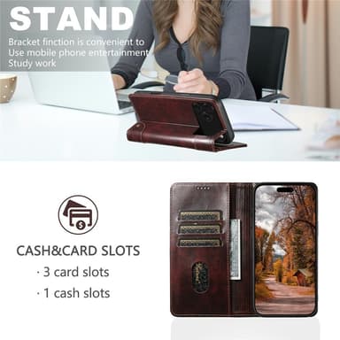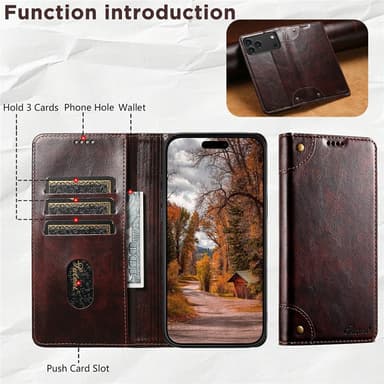 Dette stilfulde mobilcover fra SUTENI er fremstillet af førsteklasses PU-læder, der modstår ridser og giver et elegant look. Den bløde og holdbare TPU-inderside beskytter effektivt din telefon mod daglig slitage. En magnetisk lukning holder både telefon og kort sikkert på plads. Coveret har tre kortlommer og en kontantlomme, så du kan lade pungen blive hjemme. Det kan også foldes ud som et praktisk stativ til håndfri video eller opkald. En hævet kant omkring kameraet beskytter mod ridser, og der er en åbning til at besvare opkald med coveret lukket.