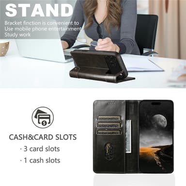 Dette stilfulde mobilcover fra SUTENI er fremstillet af førsteklasses PU-læder, der modstår ridser og giver et elegant look. Den bløde og holdbare TPU-inderside beskytter effektivt din telefon mod daglig slitage. En magnetisk lukning holder både telefon og kort sikkert på plads. Coveret har tre kortlommer og en kontantlomme, så du kan lade pungen blive hjemme. Det kan også foldes ud som et praktisk stativ til håndfri video eller opkald. En hævet kant omkring kameraet beskytter mod ridser, og der er en åbning til at besvare opkald med coveret lukket.