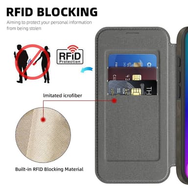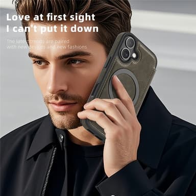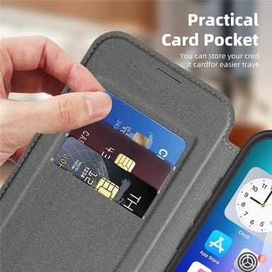 Denne elegante skal giver perfekt beskyttelse med indbyggede magneter. Problemfri MagSafe-kompatibilitet giver hurtig trådløs opladning hver gang. Skallen er lavet af slidstærkt TPU og stilfuldt PU-læder. Praktiske kortspor rummer nemt dit ID eller kreditkort. RFID-blokerende teknologi beskytter dine personlige oplysninger sikkert. Hævede kanter beskytter skærm og kamera effektivt.
