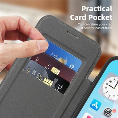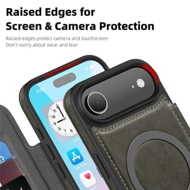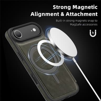 Denne elegante skal giver perfekt beskyttelse med indbyggede magneter. Problemfri MagSafe-kompatibilitet giver hurtig trådløs opladning hver gang. Skallen er lavet af slidstærkt TPU og stilfuldt PU-læder. Praktiske kortspor rummer nemt dit ID eller kreditkort. RFID-blokerende teknologi beskytter dine personlige oplysninger sikkert. Hævede kanter beskytter skærm og kamera effektivt.