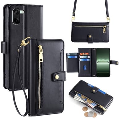 SKALO OnePlus Nord CE5 Zipper PU-Læder Skulderrem Flip Cover - Sort