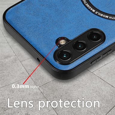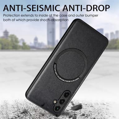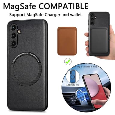 En hybrid pu læderskal med et flot læderlook og en magnetisk ring på bagsiden. Skallen består af en lidt hårdere bagside med bløde tpu-kanter.