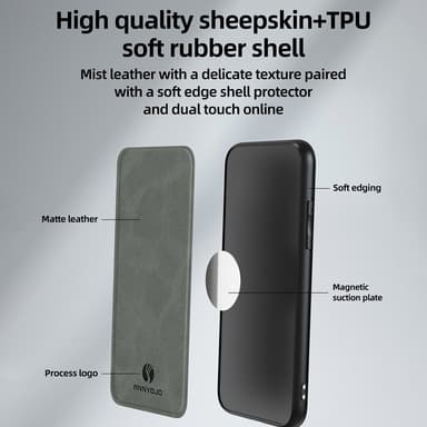 ANNYOJO PU-Læder er et stilfuldt og holdbart mobilcover fremstillet af blødt PU-læder, TPU og hård PC. Det giver en eksklusiv følelse og stærk beskyttelse mod daglig brug. Den indbyggede jernplade gør det kompatibelt med magnetiske bilholdere for nem håndfri kørsel. Med 0,3 mm hævede kanter omkring skærm og kamera beskyttes enheden effektivt mod ridser og stød. Præcise udskæringer giver nem adgang til alle funktioner uden at fjerne coveret. Den stødabsorberende konstruktion giver ekstra beskyttelse ved fald.