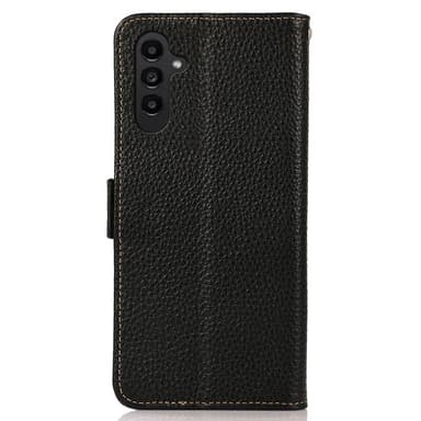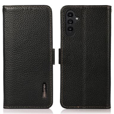 Dette elegante etui er fremstillet af ægte kolæder med litchistruktur, hvilket giver din telefon et sofistikeret og stilfuldt udtryk. Det slanke design i TPU-materiale gør etuiet let at bære og nemt at montere eller fjerne, uden at gå på kompromis med pasformen. Med indbygget RFID-beskyttelse er dine personlige oplysninger sikret mod uautoriseret scanning. Etuiet har praktiske rum til kort og kontanter og kan omdannes til et stativ for håndfri visning. Det foldbare folio-design med dobbelte magnetlukninger giver fuld beskyttelse mod ridser og stød.