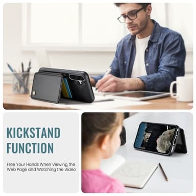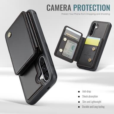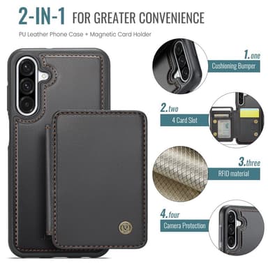 Beskyt din telefon med stil med JEEHOOD J05. Det aftagelige 2-i-1-design giver dig fleksibilitet, mens RFID-blokeringsteknologien beskytter dine kort. Med indbygget kortholder og stativfunktion er dette cover både praktisk og elegant. Den magnetiske ring sikrer kompatibilitet med MagSafe-opladning.