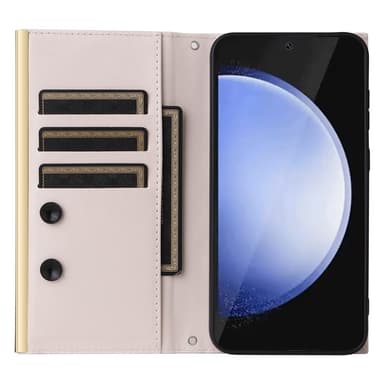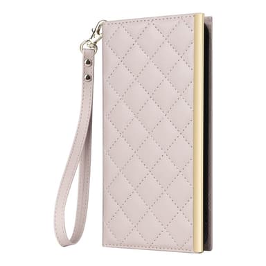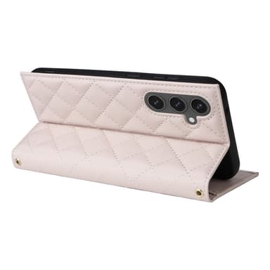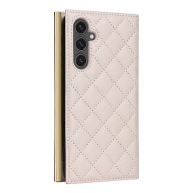 SKALO Samsung S25 FE Quiltet skulderrem med guldkant Flip Cover - Beige