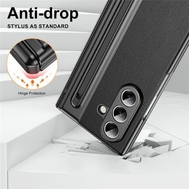 Elegant og slidstærkt design i højkvalitets PC og PU-læder med en mat, elektropletteret finish, der giver et professionelt udtryk. Den forstærkede konstruktion beskytter effektivt mod daglige stød, fald og slag. Et integreret penneholder medfølger med stylus, så du nemt kan opbevare og bruge pennen på farten. Der medfølger også hærdet glas med høj opløsning, som beskytter skærmen mod ridser og slid. Det elektropletterede design med fuld hængselsbeskyttelse giver stilfuld 360° beskyttelse.