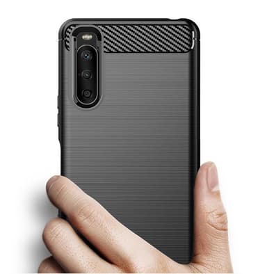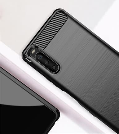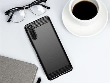 En stødsikker Armor Carbon-cover i TPU med et stilfuldt kulfiberlook.