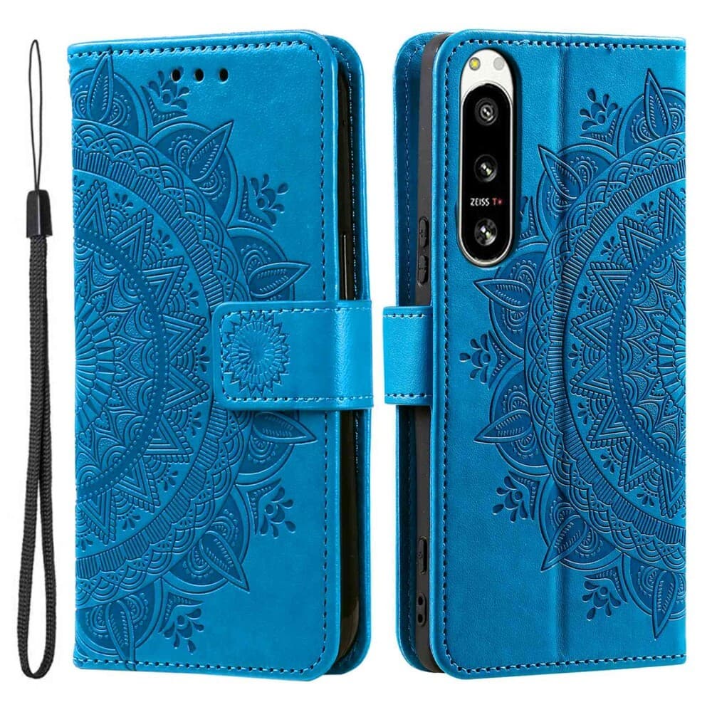SKALO Sony Xperia 5 IV 5G Mandala Flip Cover - Blå