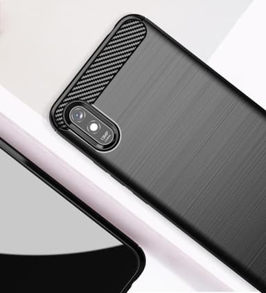 En stødsikker Armor Carbon-cover i TPU med et stilfuldt kulfiberlook.