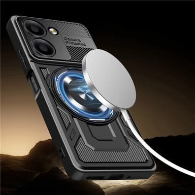 Armor Hybrid Magnetring tilbyder beskyttelsesteknologi med et to-lags design af stødabsorberende TPU og hård PC, hvilket giver en komplet beskyttelse mod fald og stød. Det indbyggede magnetiske stativ roterer 360° for praktisk håndfri brug, uanset om du arbejder, rejser eller streamer derhjemme. Stærke magneter gør den fuldt kompatibel med MagSafe-opladere og tilbehør, mens kulfibermønstret og de ergonomiske kurver giver både stil og et godt greb. Præcise udskæringer sikrer nem adgang til alle funktioner uden at fjerne coveret.