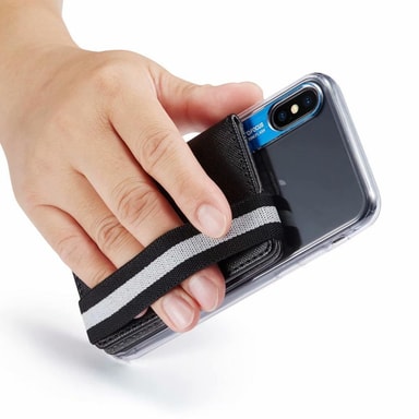Vedhæft direkte på bagsiden af din mobiltelefon: Få direkte adgang til dine mest værdifulde kort, ID-dokumenter, men også valuta som pengesedler med en kortholder, som du vedhæfter direkte på bagsiden af din mobiltelefon.