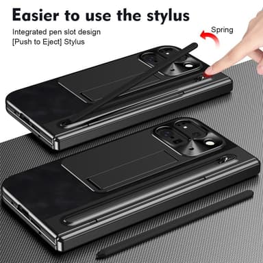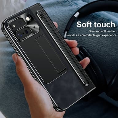 Til Google Pixel 10 Pro Fold Case Pen Holder Stand Telefoncover med Hærdet Glasfilm, Stylus - Sort【Premium Materiale for Overlegen Beskyttelse】Lavet af PU-læder og PC, tilbyder dette cover en kombination af stil og stabilitet【Forbedret LinsebeskyttelLæs mere om produktet