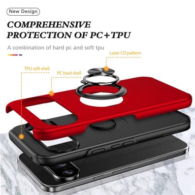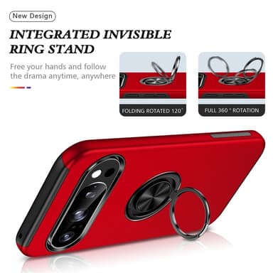 Til Pixel 10 Pro / Pixel 10 Cover Hybridcover med Finger Ring - RødHybridtelefoncover med fuld dækning og ringformet kickstand-design til Google Pixel Pixel 10 Pro / Pixel 10 CoverIntegreret ringholder for nem enhåndsbetjening, kan også fungere som eLæs mere om produktet