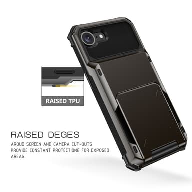 • Til iPhone 16e Cover PC+TPU Dobbeltlag Bagside med Kortholder – Sort