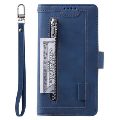 Til Samsung Galaxy A17 5G Etui med Lynlåslomme og 9 Kortlommer i PU-læderPremium Materiale: Lavet af førsteklasses PU-læder med TPU-inderside, hvilket giver en behagelig fornemmelsePungfunktion: Udstyret med kortlommer og kontantholder samt lynlåslomLæs mere om produktet