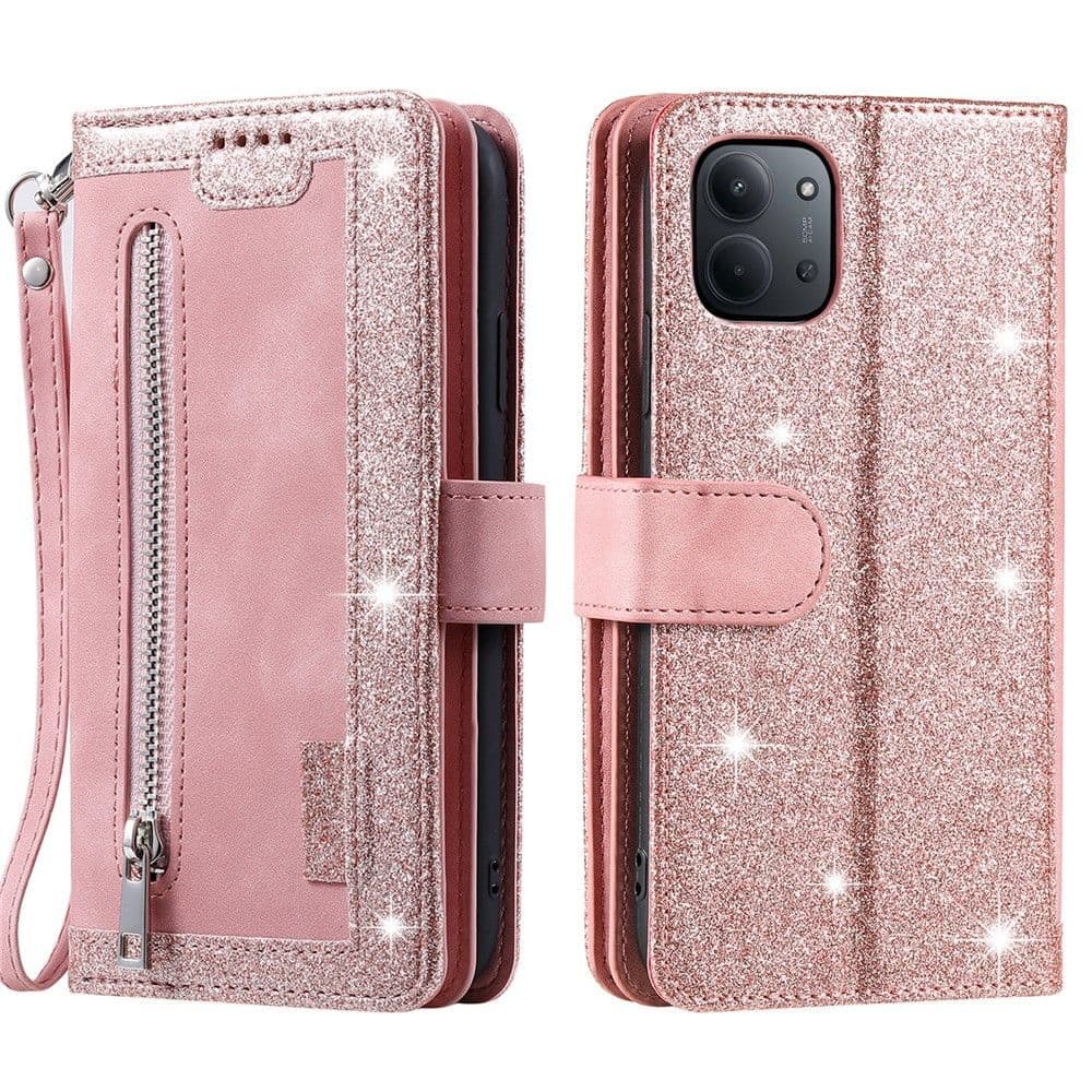 Til Xiaomi Redmi 15C Etui med Lynlåslomme og 9 Kortlommer – Pink