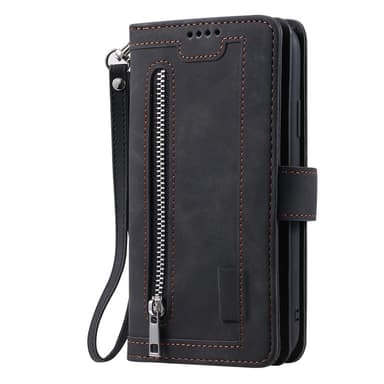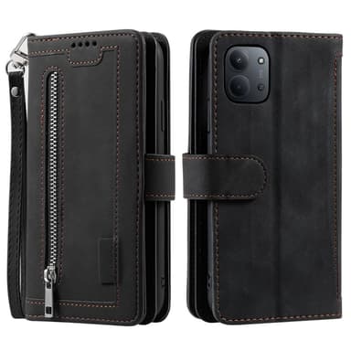 Til Xiaomi Redmi 15C Etui med Lynlåslomme og 9 Kortlommer – Sort