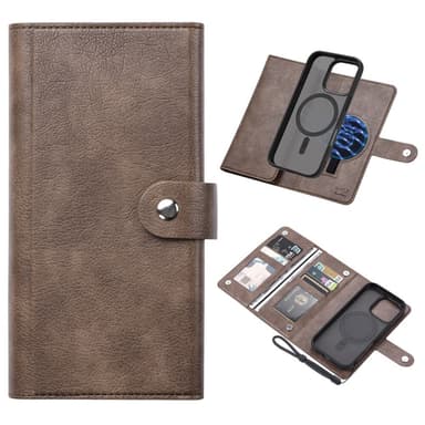 Forkæl dig selv med luksusen af en premium PU-læderpung og et slidstærkt PC + TPU-cover, perfekt kombineret til både stil og funktion. Det aftagelige design giver dig friheden til at bruge pungen separat eller sammen med telefonen, mens MagSafe-kompatibiliteten garanterer nem og sikker opladning. Føl dig tryg med RFID-blokeringsteknologien, der beskytter dine kort mod uautoriseret scanning. Din telefon er optimalt beskyttet mod fald og ridser takket være det robuste cover. Nyd det alsidige 2-i-1-design, der giver dig det bedste fra to verdener.