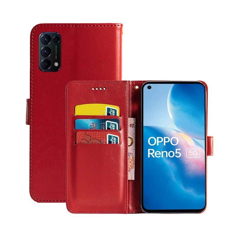 Wallet Cover 3-kort Oppo Reno5 5G  - rød