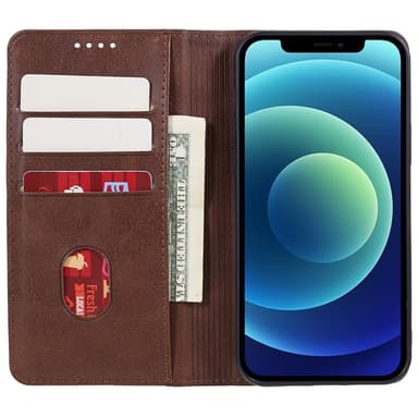 Wallet Stand Phone Case til iPhone 15 Plus, kalvekonstruktion Stødsikkert mobiltelefoncover - Kaffe Karakter iseret af læder+TPU-materiale, fin kvalitet og elegant udseende Designet med korthuller og kontantrum til opbevaring af kontanter og kort KanLæs mere om produktet