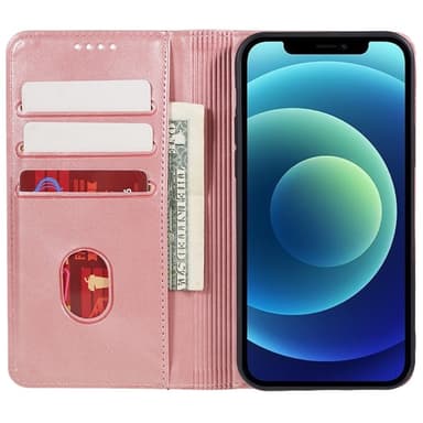 Wallet Stand Phone Case til iPhone 15 Pro Max, kalvstruktur Stødsikkert mobiltelefoncover - Rose Gold Karakter iseret ved læder+TPU-materiale, fin kvalitet og elegant udseende Designet med kortspor og kontantrum til opbevaring af kontanter og kort KaLæs mere om produktet