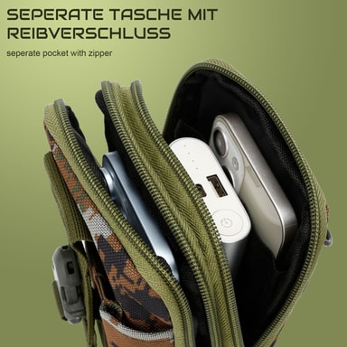 Cadorabos taktiske mobiltaske i camouflage er perfekt til udendørsentusiaster. Med en højde på 185 mm og en bredde på 125 mm giver den plads til smartphones på op til 6,7 tommer. Den er ideel til vandreture, camping, jogging og andre udendørs aktiviteter og holder dine vigtigste ting sikre og lige ved hånden.