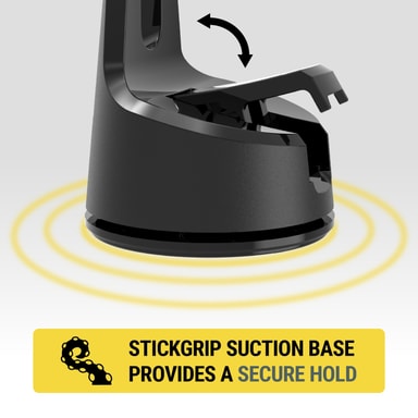 Sikker montering: Fastgøres sikkert til forruden eller instrumentbrættet med StickGrip™ sugekop-base.