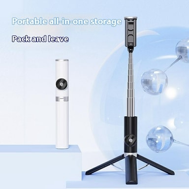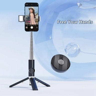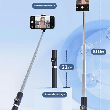 P12S Bærbar Bluetooth-kompatibel fjernbetjening Selfie Stick Smartphones Udtrækkeligt stativ med 1 udfyldningslys【Stabilt stativ】Det stærke stativ giver forbedret stabilitet, selv i blæsende forhold.【360° rotation】Understøtter 360-graders telefonrotaLæs mere om produktet