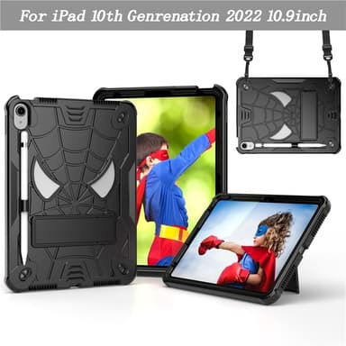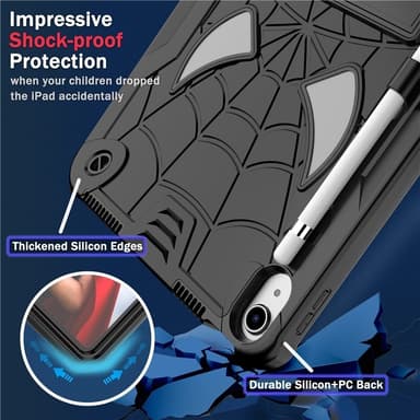 SKALO iPad 11"" (2025) Edderkoppespind Børnecover - Sort