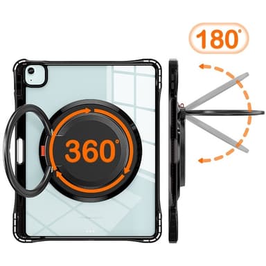 Dette robuste cover kombinerer funktion og beskyttelse med et 360° roterbart og 180° foldbart håndgreb, så du nemt kan bære, hænge eller bruge din tablet i forskellige positioner. Fremstillet af PC, TPU og akrylmaterialer giver det fuld beskyttelse mod stød, fald og daglig slitage. De forstærkede hjørner absorberer effektivt stød ved uheld. Det justerbare stativ giver stabilitet til håndfri brug i forskellige vinkler. Den gennemsigtige akrylbagside fremhæver tabletens design og beskytter samtidig effektivt.