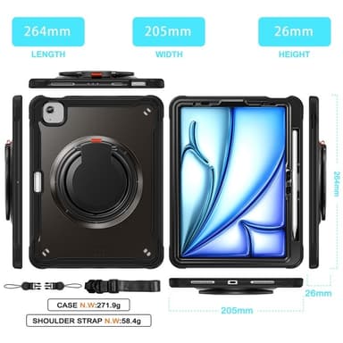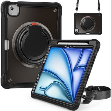 Dette slidstærke cover kombinerer funktionalitet og beskyttelse i ét smart design. Det 360-graders roterbare håndtag gør det nemt at hænge enheden hvor som helst og giver fleksible bæremuligheder. Forstærkede silikonehjørner absorberer stød og beskytter din tablet mod fald og slag. Coveret har et dobbelt lag med TPU-yderlag og hård PC-inderskal for fuld beskyttelse. Den indbyggede stander giver mulighed for justerbare visningsvinkler i både liggende og stående position. En justerbar nylonrem med kliklåse gør det nemt at fastgøre coveret til f.eks. bilsæder – ideelt til underholdning på farten. Derudover har coveret en praktisk penneholder i siden til sikker opbevaring af stylus (stylus medfølger ikke).