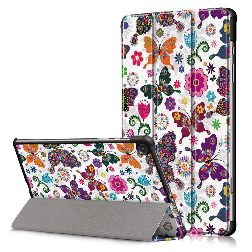 Møn@@ stret Trifoldet stativ Læder Smart Protective Tablet-etui til Samsung Galaxy Tab S6 Lite P610/P615 - Butterfly Stilfuldt mønster, klæder din enhed med et karakteristisk overtøj Trifoldet stativ for nem visning og indtastning Automatisk søvn/vågLæs mere om produktet