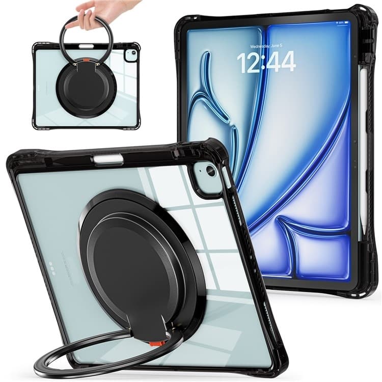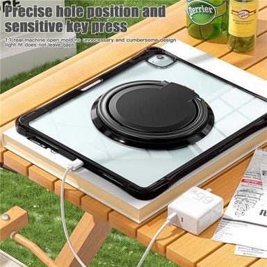 Dette robuste cover kombinerer funktion og beskyttelse med et 360° roterbart og 180° foldbart håndgreb, så du nemt kan bære, hænge eller bruge din tablet i forskellige positioner. Fremstillet af PC, TPU og akrylmaterialer giver det fuld beskyttelse mod stød, fald og daglig slitage. De forstærkede hjørner absorberer effektivt stød ved uheld. Det justerbare stativ giver stabilitet til håndfri brug i forskellige vinkler. Den gennemsigtige akrylbagside fremhæver tabletens design og beskytter samtidig effektivt.